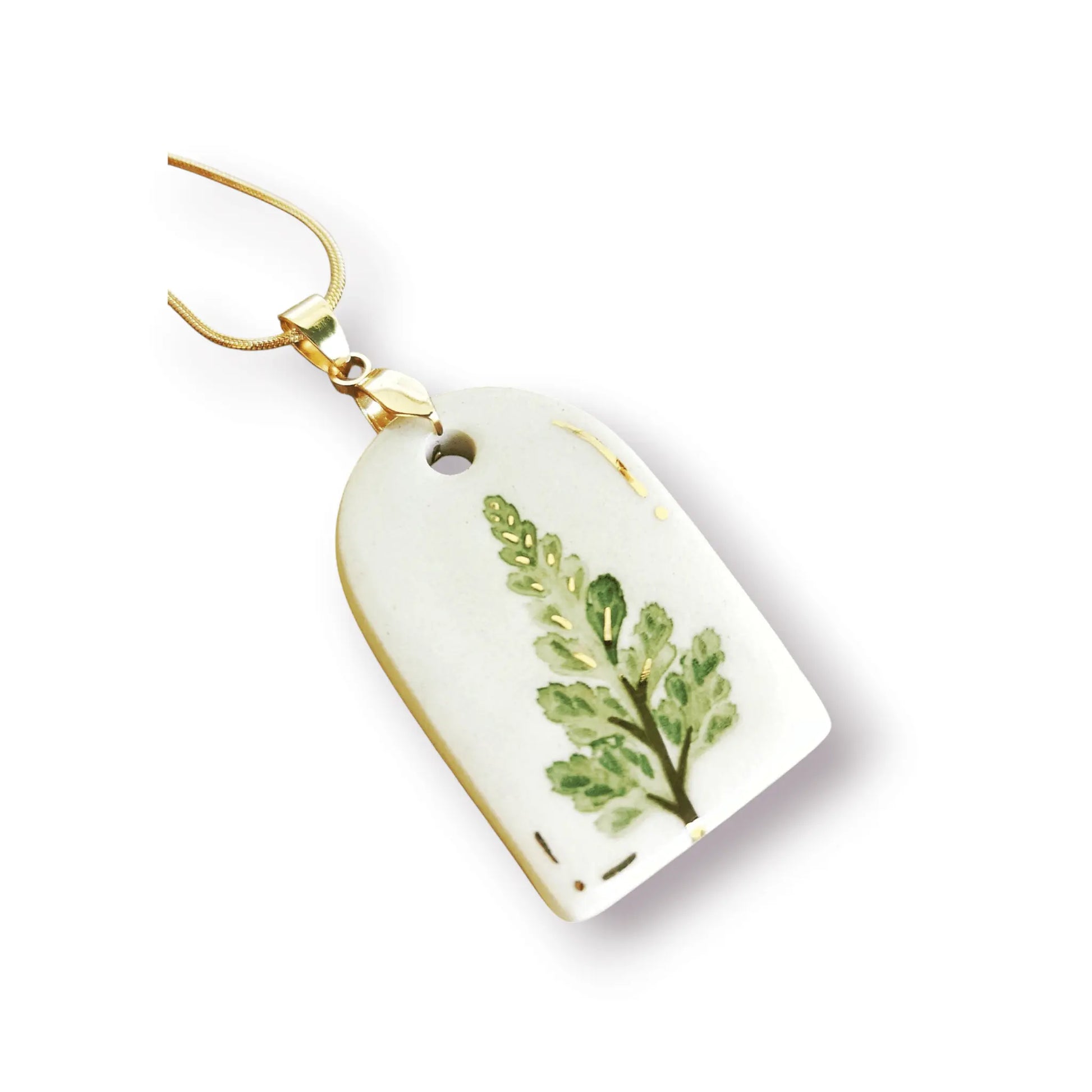 Colgante de cerámica artesanal que captura la esencia de la naturaleza con su diseño botánico minimalista.